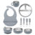 Love this feeding set! The suction bowl sticks to the high chair tray, no more flying dishes. Bibs are super easy to clean too 👍
