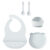 When it comes to feeding a toddler, this set is an absolute lifesaver. The bear-themed plate and bowl are not only adorable but also practical - they stick to the high chair tray so no more spills or tipped-over meals! And the silicone bib? Genius for catching all those crumbs and bits that usually end up everywhere.