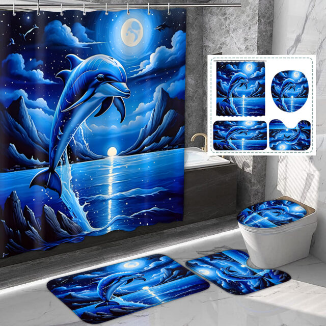 This set is perfect for anyone looking to refresh their bathroom with a touch of coastal charm. Whether you’re decorating a beach house, upgrading a guest bathroom, or adding serenity to your everyday space, the moonlit blue dolphin design creates a relaxing and inviting atmosphere year-round.